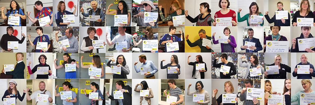 袴田巖さんの77歳の誕生日にあわせ、他団体と共に、事件の早期再審開始と袴田さんの釈放を求める街宣および写真アクションを行いました。袴田さんのえん罪は海外でも大きな関心を呼び、アムネスティの世界中の支部から袴田さんを応援する写真が届きました。